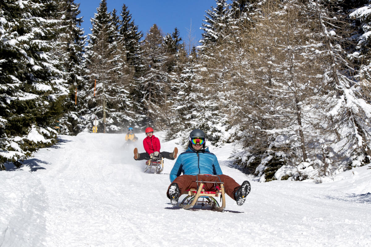 Die Strecken führen durch verschneite Zirbenwälder, über sanfte Wellen und flotte Kurven. Mal chillig, mal sportlich – aber immer mit einem Wow-Moment, wenn du den Fahrtwind spürst und das Lachen einfach raus muss.